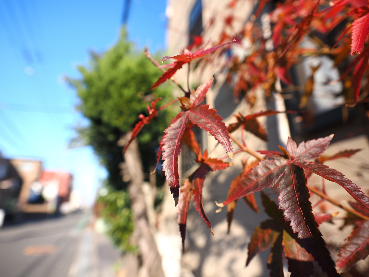 買い物ついでに紅葉を見掛けたときは陽が当たって良かったんだけど、写真撮りに行ったときは時が過ぎて日陰になってしまってました、あーあ。